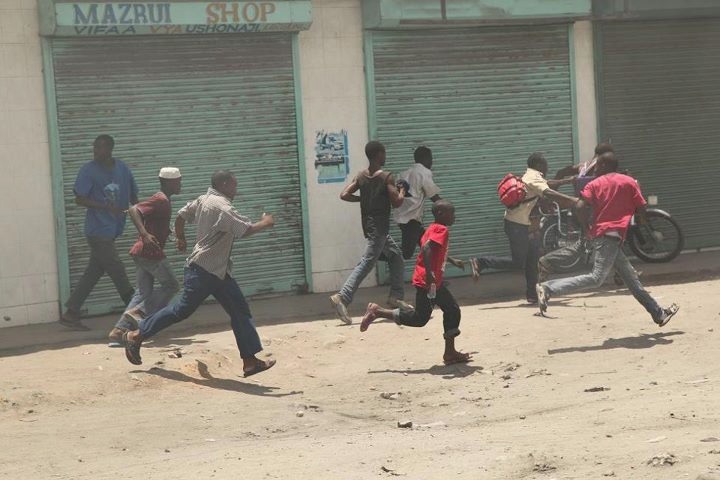 Wamachinga Mbali mbali wakikimbia katika eneo la tukio wakati wa machafuko hayo yamepamba moto